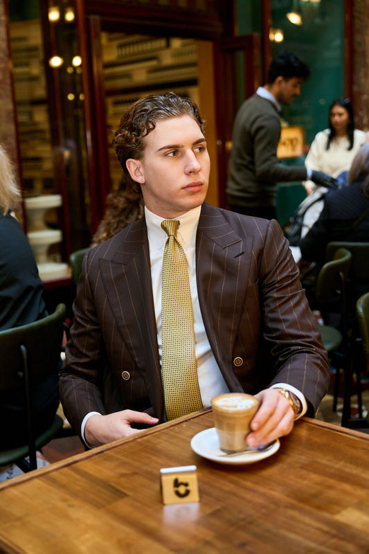 Our bespoke tailoring is our most premium offering is an artisanal process that begins with up to 42 precise measurements. A paper pattern is created exclusively for you, and our master tailors in Napoli dedicate up to 75 hours of meticulous craftsmanship to each garment. Every detail is hand-finished, resulting in a suit that is truly one of a kind.